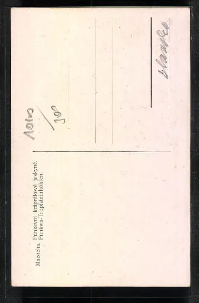 Personenbezogene Daten auf der Rückseite der Karte wurden durch blauen Textmarker unkenntlich gemacht. Die blauen Stellen sind auf die Vorderseite durchgeweicht und wirken sich negativ auf das Postkartenfoto aus