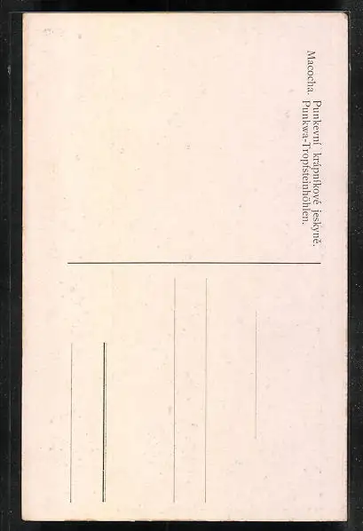Personenbezogene Daten auf der Rückseite der Karte wurden durch blauen Textmarker unkenntlich gemacht. Die blauen Stellen sind auf die Vorderseite durchgeweicht und wirken sich negativ auf das Postkartenfoto aus