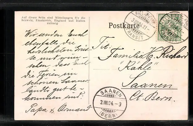 alte Ansichtskarte, gelaufen 1904, guter Zustand