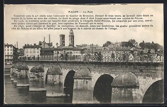 AK Mâcon, Le Pont avec vue sur les bâtiments historiques en arrière-plan