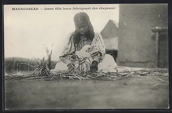 AK Madagascar, Jeune fille hova fabriquant des chapeaux