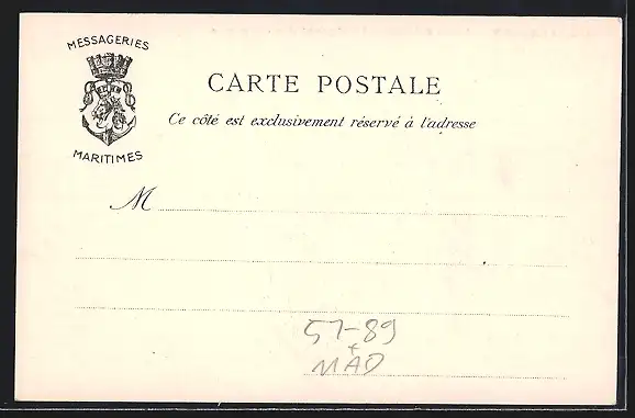 Personenbezogene Daten auf der Rückseite der Karte wurden durch blauen Textmarker unkenntlich gemacht. Die blauen Stellen sind auf die Vorderseite durchgeweicht und wirken sich negativ auf das Postkartenfoto aus