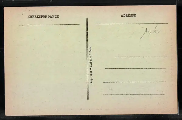 Personenbezogene Daten auf der Rückseite der Karte wurden durch blauen Textmarker unkenntlich gemacht. Die blauen Stellen sind auf die Vorderseite durchgeweicht und wirken sich negativ auf das Postkartenfoto aus