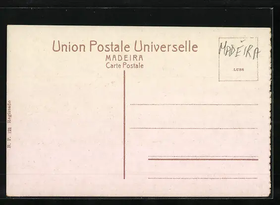 Personenbezogene Daten auf der Rückseite der Karte wurden durch blauen Textmarker unkenntlich gemacht. Die blauen Stellen sind auf die Vorderseite durchgeweicht und wirken sich negativ auf das Postkartenfoto aus