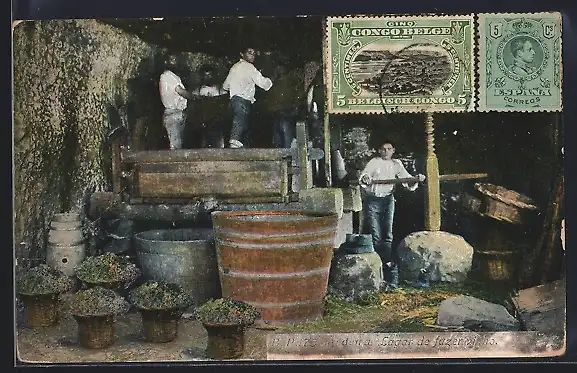 Personenbezogene Daten auf der Rückseite der Karte wurden durch blauen Textmarker unkenntlich gemacht. Die blauen Stellen sind auf die Vorderseite durchgeweicht und wirken sich negativ auf das Postkartenfoto aus