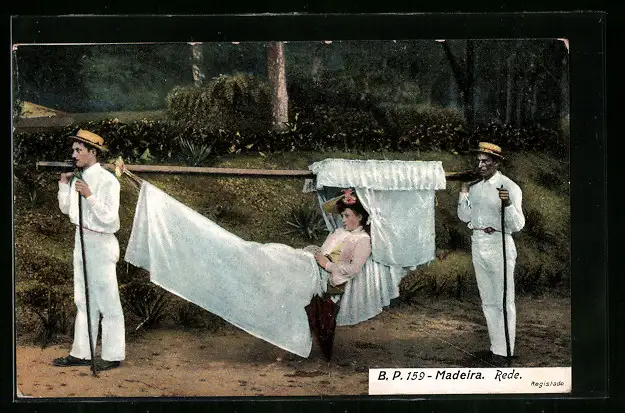 AK Madeira, Rede, Reiche Dame in einer Sänfte