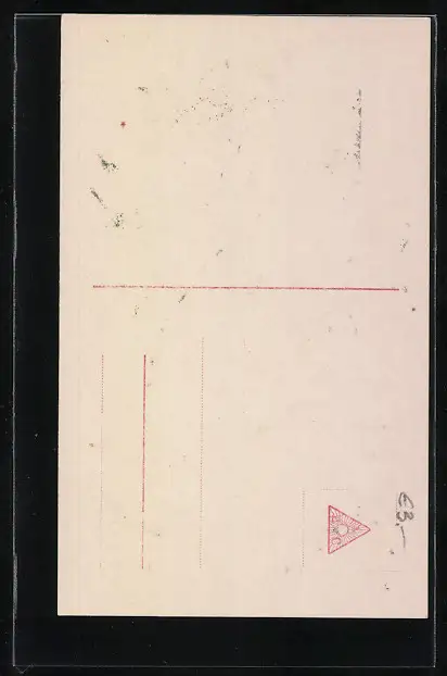 Personenbezogene Daten auf der Rückseite der Karte wurden durch blauen Textmarker unkenntlich gemacht. Die blauen Stellen sind auf die Vorderseite durchgeweicht und wirken sich negativ auf das Postkartenfoto aus
