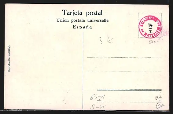Personenbezogene Daten auf der Rückseite der Karte wurden durch blauen Textmarker unkenntlich gemacht. Die blauen Stellen sind auf die Vorderseite durchgeweicht und wirken sich negativ auf das Postkartenfoto aus