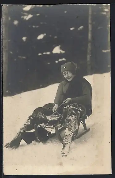 AK Mädchen auf einem Schlitten