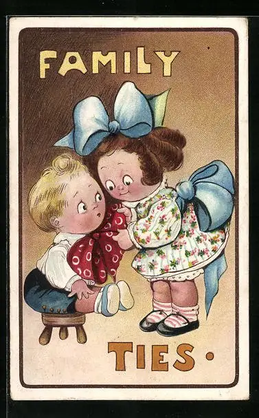 AK Mädchen bindet Brüderchen die Fliege