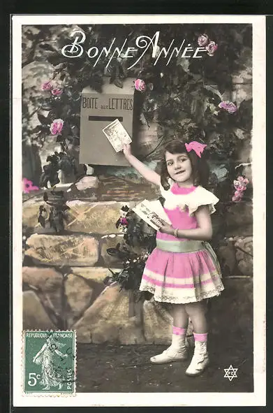 AK Mädchen bringt einen Brief zum Briefkasten, Bonne Année