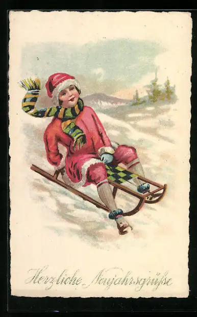 AK Mädchen fährt auf einem Schlitten durch den Schnee