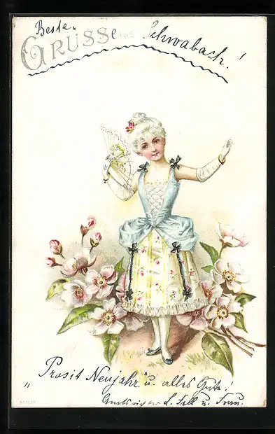 AK Mädchen im Barockkleid mit Fächer in der Hand