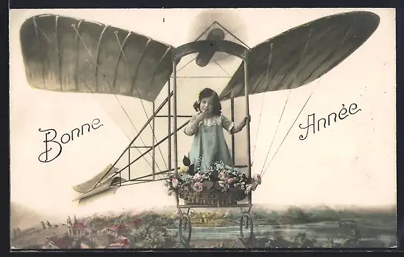 AK Mädchen in einem Flugzeug