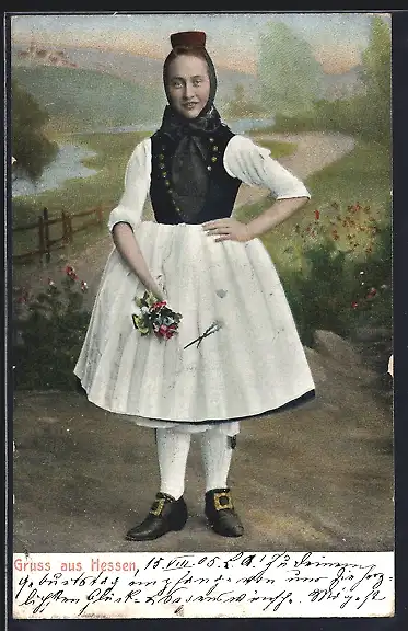 AK Mädchen in hessischer Tracht