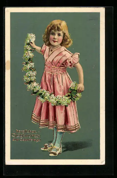 AK Mädchen mit Blumenranke zum Geburtstag