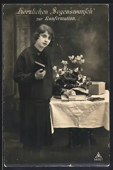 AK Mädchen mit Buch zu ihrer Konfirmation