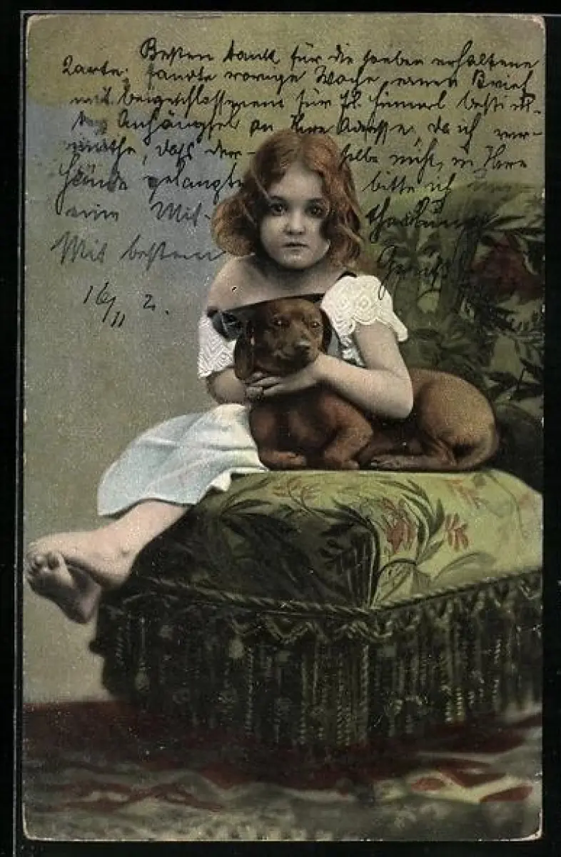 AK Mädchen mit Dackel