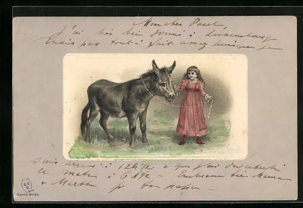 AK Mädchen mit Esel