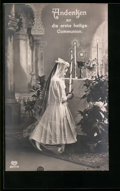 AK Mädchen mit Kerze zur Kommunion