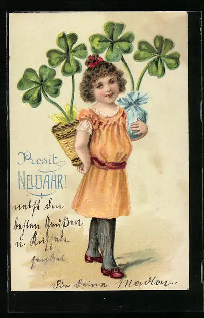 AK Mädchen mit Kleeblättern