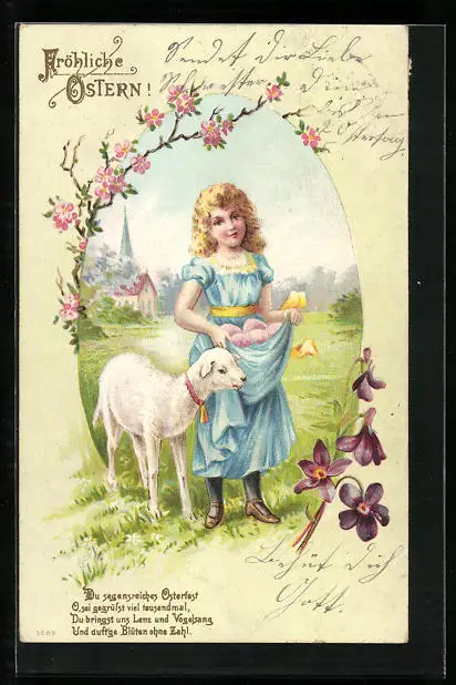 AK Mädchen mit Lämmchen zu Ostern