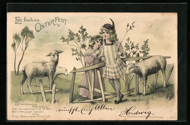 AK Mädchen mit Lämmchen zu Ostern