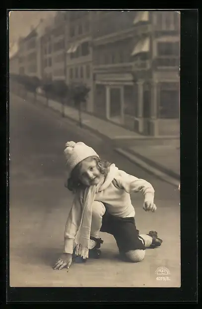 AK Mädchen mit Rollschuhen kniet auf dem Boden