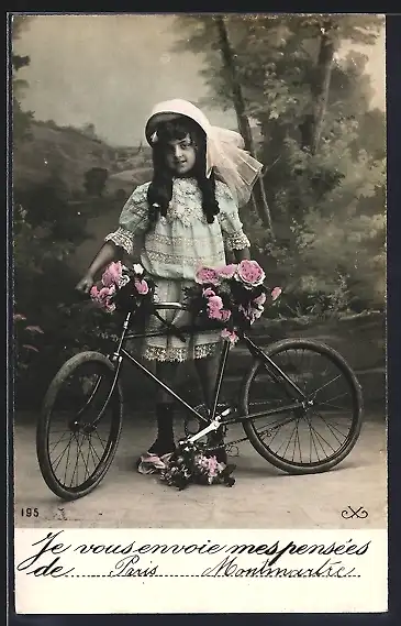 AK Mädchen mit ihrem Fahrrad und Rosen