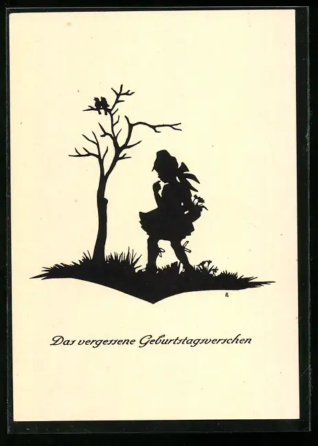 AK Mädchen pflückt Blumen, Scherenschnitt