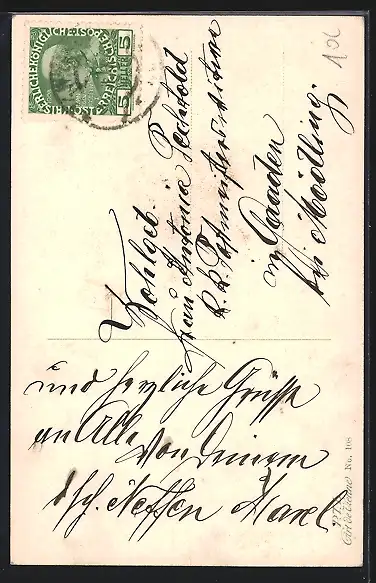 Personenbezogene Daten auf der Rückseite der Karte wurden durch blauen Textmarker unkenntlich gemacht. Die blauen Stellen sind auf die Vorderseite durchgeweicht und wirken sich negativ auf das Postkartenfoto aus