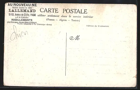 Personenbezogene Daten auf der Rückseite der Karte wurden durch blauen Textmarker unkenntlich gemacht. Die blauen Stellen sind auf die Vorderseite durchgeweicht und wirken sich negativ auf das Postkartenfoto aus
