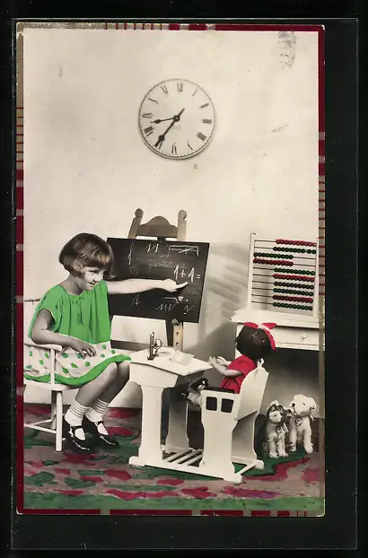 AK Mädchen spielt Lehrerin mit ihrer Puppe