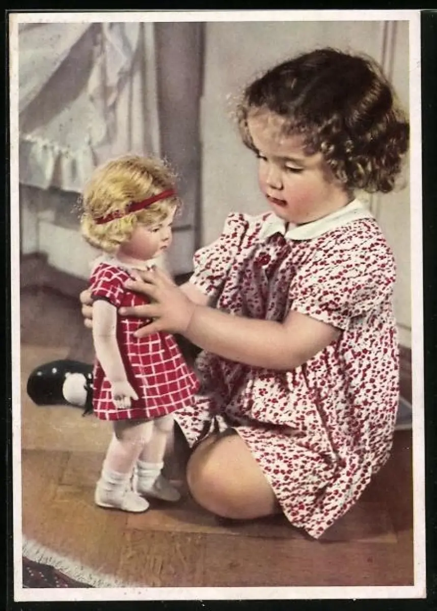 AK Mädchen spielt mit einer Käthe Kruse-Puppe