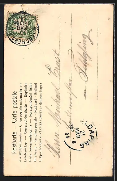 alte Ansichtskarte, gelaufen 1904, Stempelspur, guter Zustand