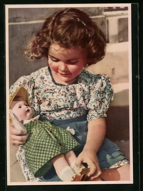 AK Mädchen spielt mit seiner Puppe