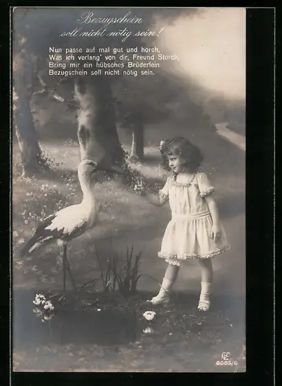 AK Mädchen und Klapperstorch ohne Bezugsschein
