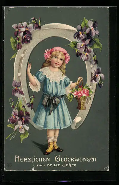AK Mädchen unter veilchengeschmücktem Hufeisen