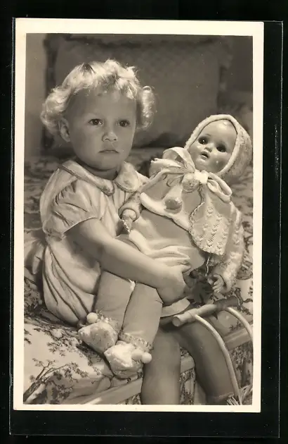 AK Mädchen wiegt seine Puppe im Arm