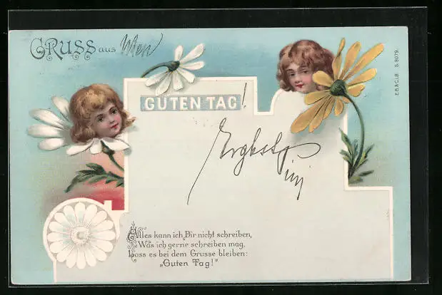 AK Mädchenköpfe auf Blumen, Metamorphose