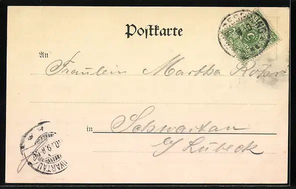 alte Ansichtskarte, gelaufen 1899, Stempelspur, guter Zustand