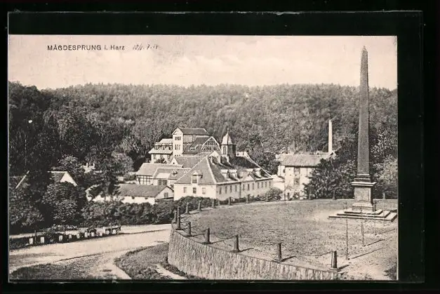 AK Mägdesprung i. Harz, Ortsansicht mit Obelisk