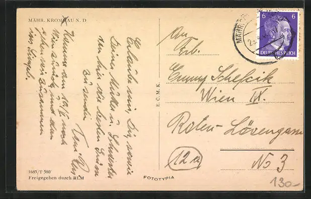 alte Ansichtskarte, gelaufen 1944, Bugspur re. oben, guter Zustand