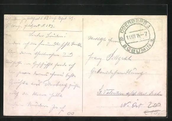 alte Ansichtskarte, gelaufen 1914 als Feldpost, guter Zustand