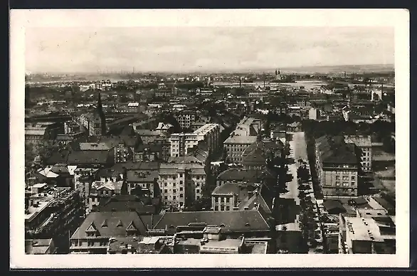 AK Mährisch Ostrau, Stadtansicht aus der Vogelperspektive, Strassenpartie