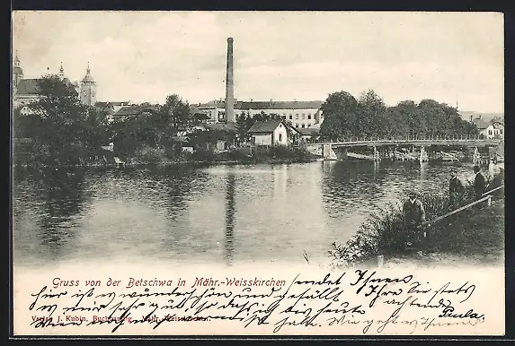 AK Mährisch Weisskirchen, am Ufer der Betschwa