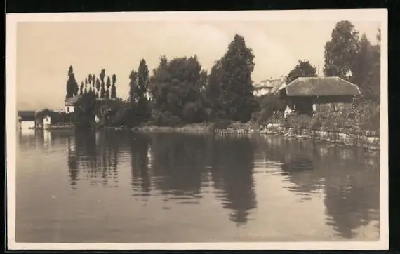 AK Männedorf, Blick auf See mit Bäumen