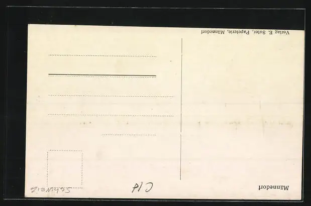 Personenbezogene Daten auf der Rückseite der Karte wurden durch blauen Textmarker unkenntlich gemacht. Die blauen Stellen sind auf die Vorderseite durchgeweicht und wirken sich negativ auf das Postkartenfoto aus