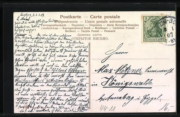 alte Ansichtskarte, gelaufen 1907, guter Zustand