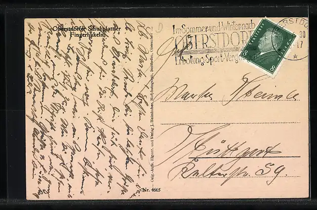 alte Ansichtskarte, gelaufen 1930, Bugspur oben re., guter Zustand